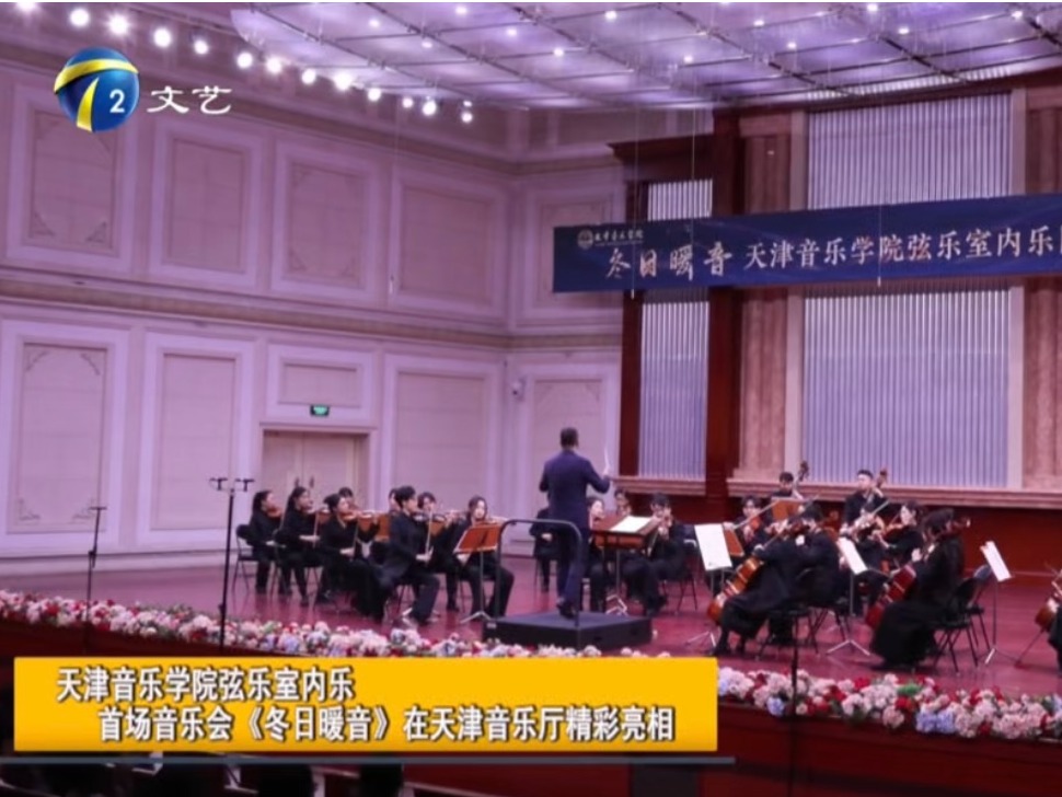 媒体聚焦|天津电视台文艺频道《文化关注》栏目报道。天津音乐学院弦乐室内乐团首场音乐会《冬日暖音》在天津音乐厅精彩亮相。