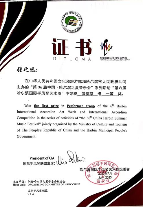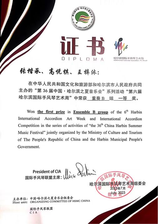 7月26至30日,第六届哈尔滨国际手风琴艺术周成功举办。本届“国际手风琴艺术周”是经文化和旅游部批准,列入第36届哈尔滨之夏音乐会的重要项目,由哈尔滨市人民政府和联合国教科文组织国际手风琴联盟共同主办,哈尔滨师范大学、哈尔滨市文化广电和旅游局承办。