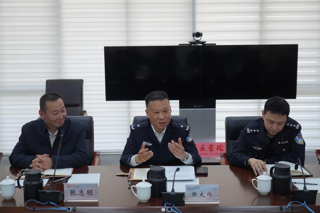 为深入推进平安校园建设,以党建引领凝聚警校合力,用英模精神筑牢交通安全防线,3月31日,天津音乐学院与交警河东支队、交警六纬路大队联合开展“警校共建 党建引领 英模精神 构筑交通安全屏障”主题座谈会。交警河东支队副支队长张大炜、英模代表张志明、六纬路大队长李鹏杰、天津音乐学院副院长刁可出席座谈会。我校党委保卫工作部负责同志参加会议。