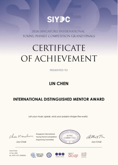 新加坡国际(青少年)钢琴比赛创办于2018年,为AAF国际赛事基金会认证赛事。该基金会由钢琴大师玛尔塔·阿格里奇创立,仅认证肖邦、范·克莱本等国际顶级赛事,赛事权威性与含金量备受国际认可,我系学生、肖邦国际钢琴比赛最佳波兰舞曲演奏奖李天佑曾在2024年获得此项赛事桂冠。我系陈琳、陈蕾老师受邀担任此次比赛评委。