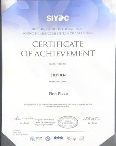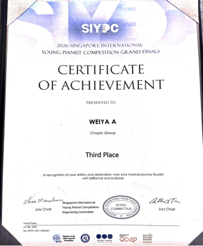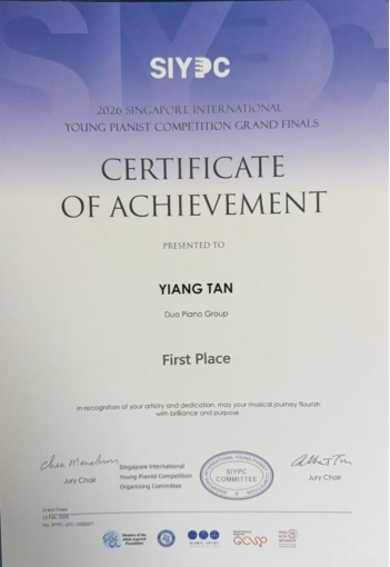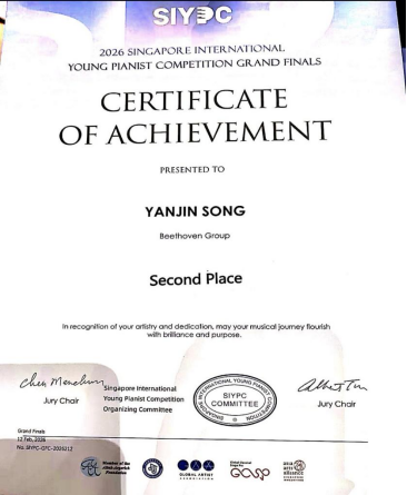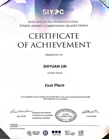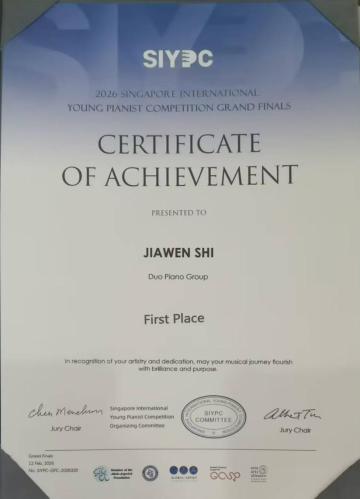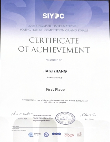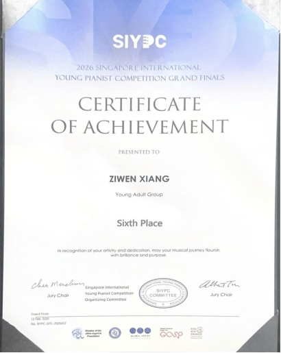 (编辑:于欣霏 阿维雅 杜晓静 责任编辑:王园)近日,2026新加坡国际(青少年)钢琴比赛圆满落幕。我校钢琴专业学生凭借精湛技艺与出色表现,为学校赢得荣誉。