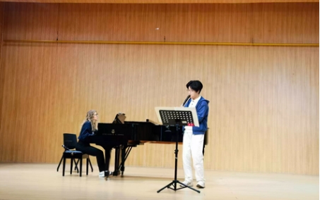 音乐会曲目涵盖多个经典与特色作品,莫扎特的《F大调双簧管四重奏K370》无疑是本场音乐会的一大亮点,展现了双簧管与弦乐之间珠联璧合的默契,让听众仿佛置身于古典音乐的梦幻世界。舒曼的《八首小品作品83号之三》中,单簧管、中提琴和钢琴相互交织,用音符诉说着舒曼内心深处的情感,带听众领略浪漫主义音乐的独特魅力。《圆号 长号 钢琴三重奏 第一乐章 D.L.新泊松》,圆号的圆润、长号的雄浑、钢琴的灵动,三种不同音色的乐器在第一乐章中碰撞出奇妙的火花,让听众感受到音乐的多元与包容。勃拉姆斯的《g小调第一钢琴四重奏 第四乐章:吉普赛风格的回旋曲》将音乐会的气氛推向高潮。这一乐章充满了吉普赛风格的热情与奔放,钢琴、小提琴、中提琴和大提琴的配合默契十足,让听众在激情澎湃的音乐中感受吉普赛文化的独特魅力。最后,亨利·布罗德 - 多尼采蒂的《拉美莫尔的露琪亚》主题二重奏以其优美的旋律和深情地演绎,将多尼采蒂歌剧《拉美莫尔的露琪亚》中的经典主题展现得淋漓尽致,带听众走进那个充满爱恨情仇的音乐世界。演员们的精湛演绎赢得台下观众阵阵掌声,也为此次两院教研交流活动画上圆满句号。