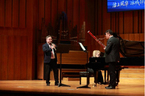 晚间,“沽上风华 冰城印象”室内乐精品课程教研交流专场音乐会在天津音乐学院音乐厅精彩上演。校党委书记王欢、哈尔滨音乐学院院长宋飞出席活动。