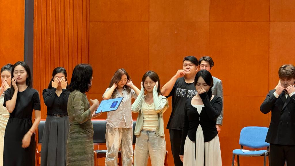 唐梋梋老师重点讲到,歌剧演员最重要的是感知身体。身体感知影响舞台表演。歌剧中不仅有歌唱,还有大量的表演成分。演员需要通过身体语言来传达角色的情感、性格和故事。敏锐的身体感知能让演员准确地控制肢体动作的幅度、力度和节奏,使表演更加自然流畅、富有感染力。例如,一个细微的手势、一个恰到好处的转身,都可能为角色增色不少。再者,身体感知有助于应对演出压力。歌剧演出往往时间长、强度大,对演员的体力和耐力是很大的考验。感知身体的状态可以让演员及时调整自己的能量分配,避免过度疲劳和受伤。在紧张的演出环境中,演员通过放松身体、调整呼吸等方式,可以缓解压力,保持良好的表演状态。