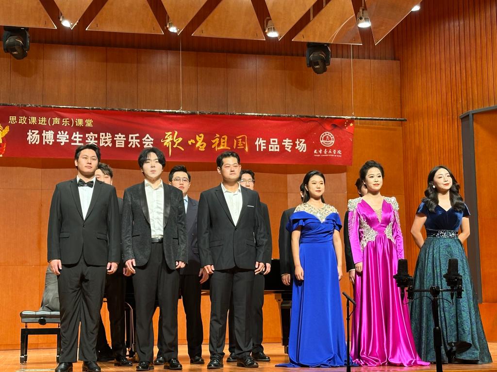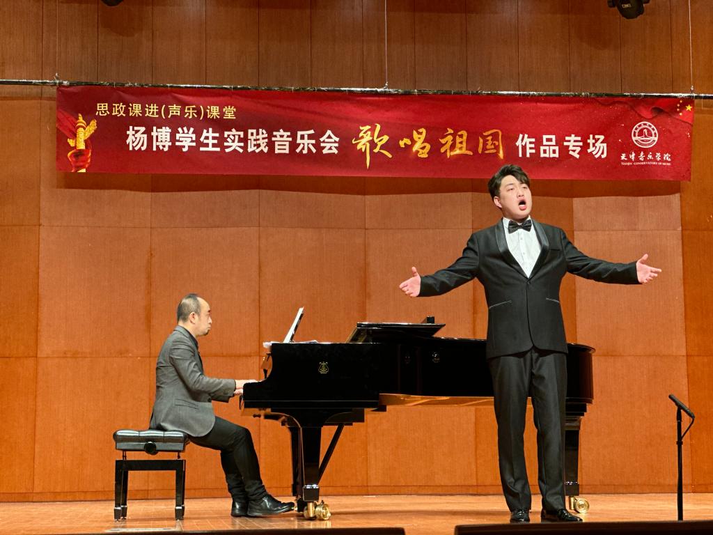 9月27日晚,思政课进(声乐)课堂——杨博学生实践系列音乐会(歌唱祖国作品专场)于天津音乐学院演奏厅隆重上演。本场音乐会以“歌唱祖国”为主题,旨在将课堂教学理念与音乐会实践相结合,激发每一位演唱者和听众的爱国情怀和使命担当。