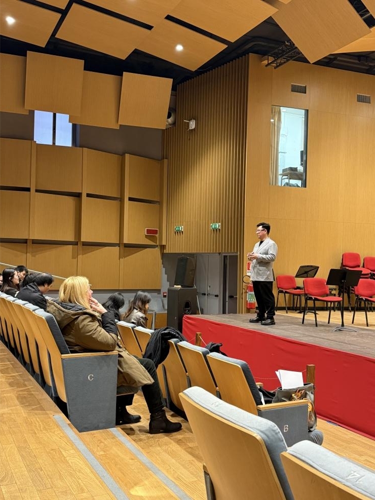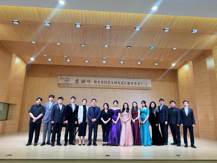 公开课上,苏老师围绕中国声乐作品国际化推广,解析核心路径与实操方法,对比中意声乐教育特色,为师生打开国际化教学视野。访意汇报音乐会:师生同台展教学硕果